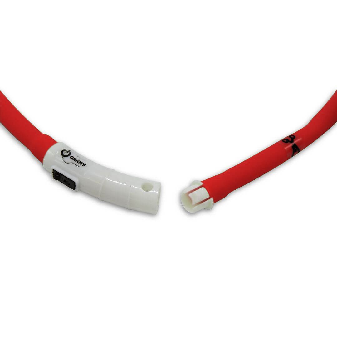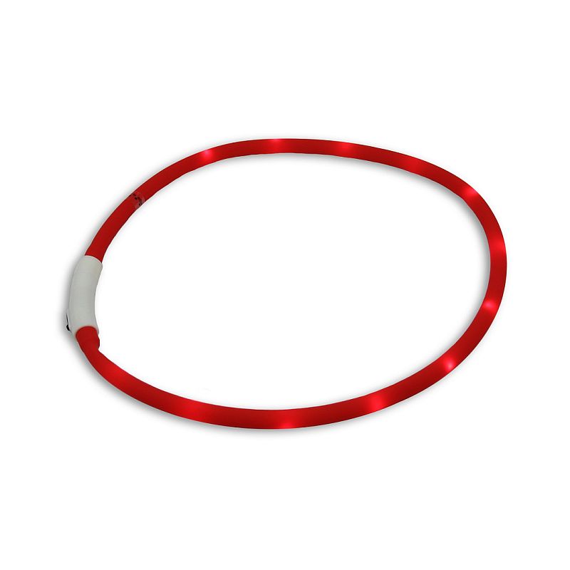 LED obojek pro psy v červené barvě zvýší viditelnost vašeho psího kámoše až na vzdálenost 500 metrů. Mlha, déšť, šero? Žádný problém. Tři módy světla - rychlé a pomalé blikání, stále svícení, a to s výdrží až 5 hodin. Dobíjení přes USB kabel. Délka obojku je 70 cm a lze zkrátit, jak potřebujete.